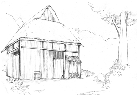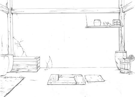 木こりの家?もしくは山の中の家。山姥がいる