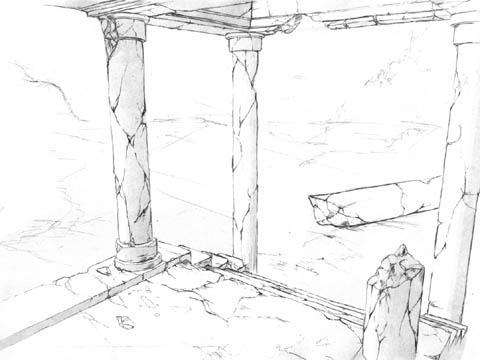 海の奥深くにあるという神殿とか、勝手に想像してかいた。